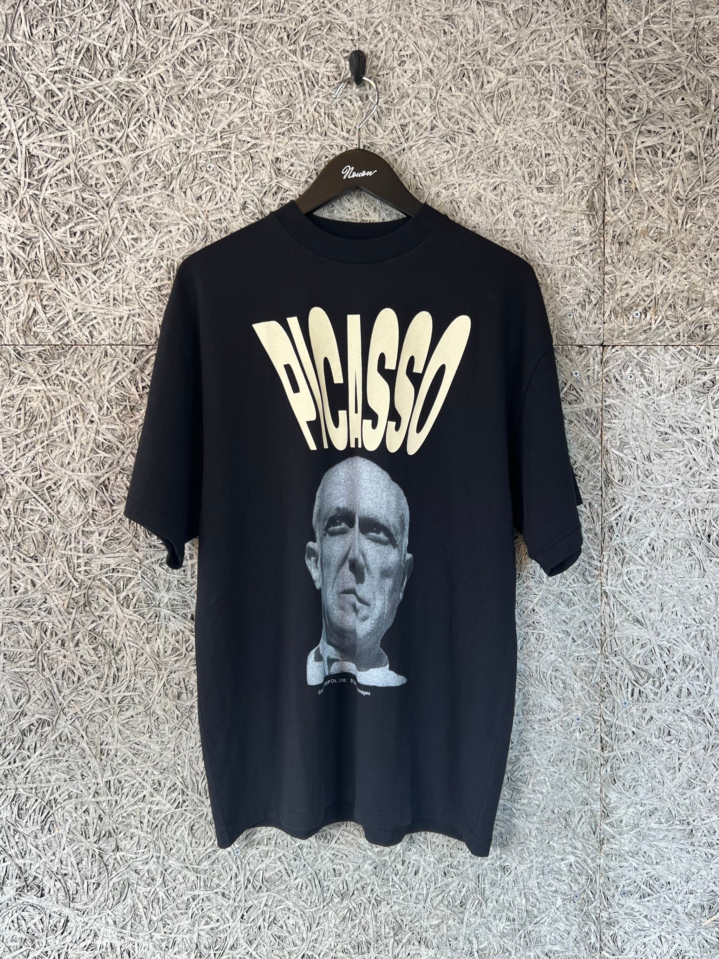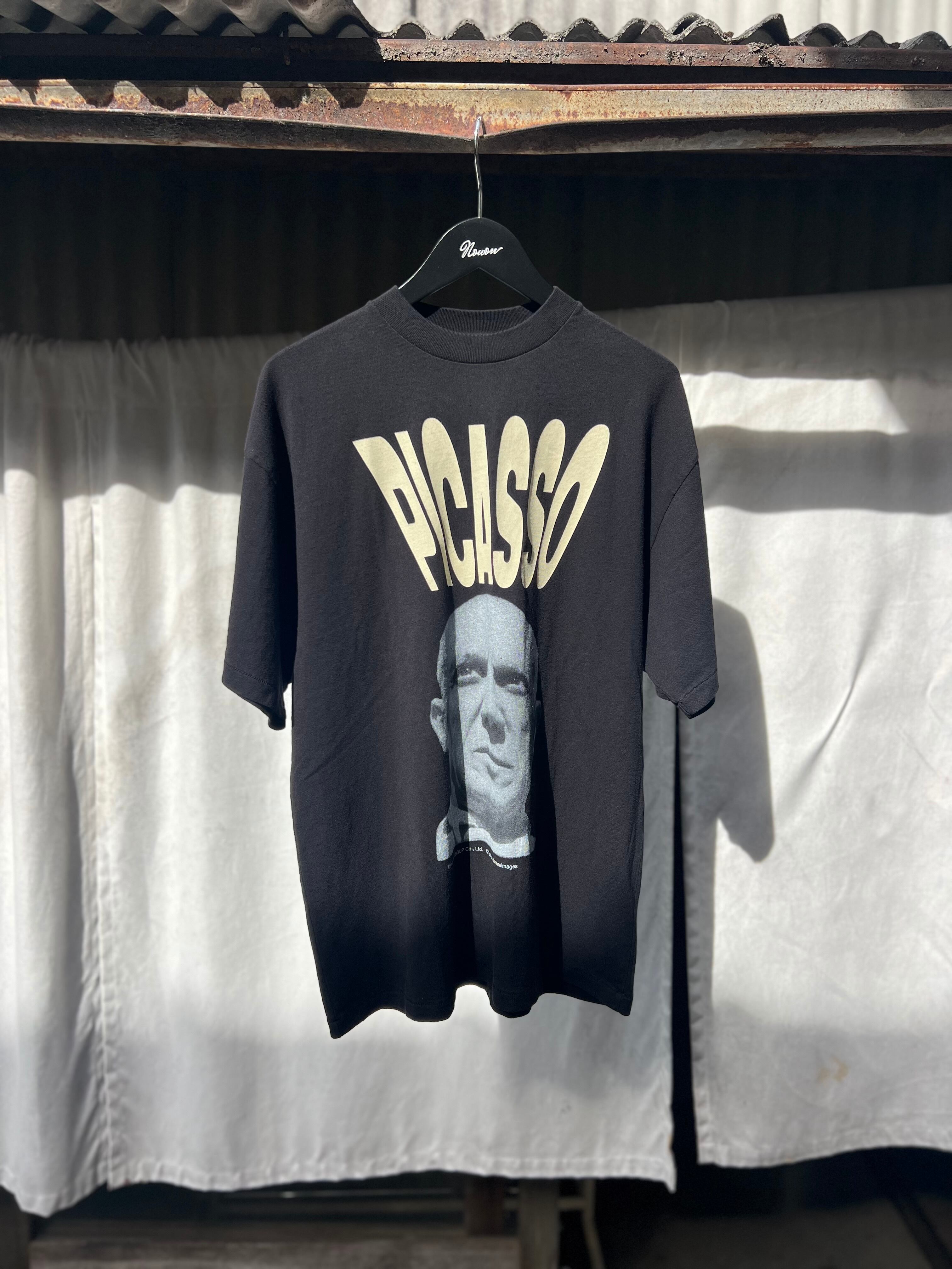 パブロ・ピカソの顔写真を大胆にプリントしたフォトTEE。彼の見つめる先に、現代アートがある。