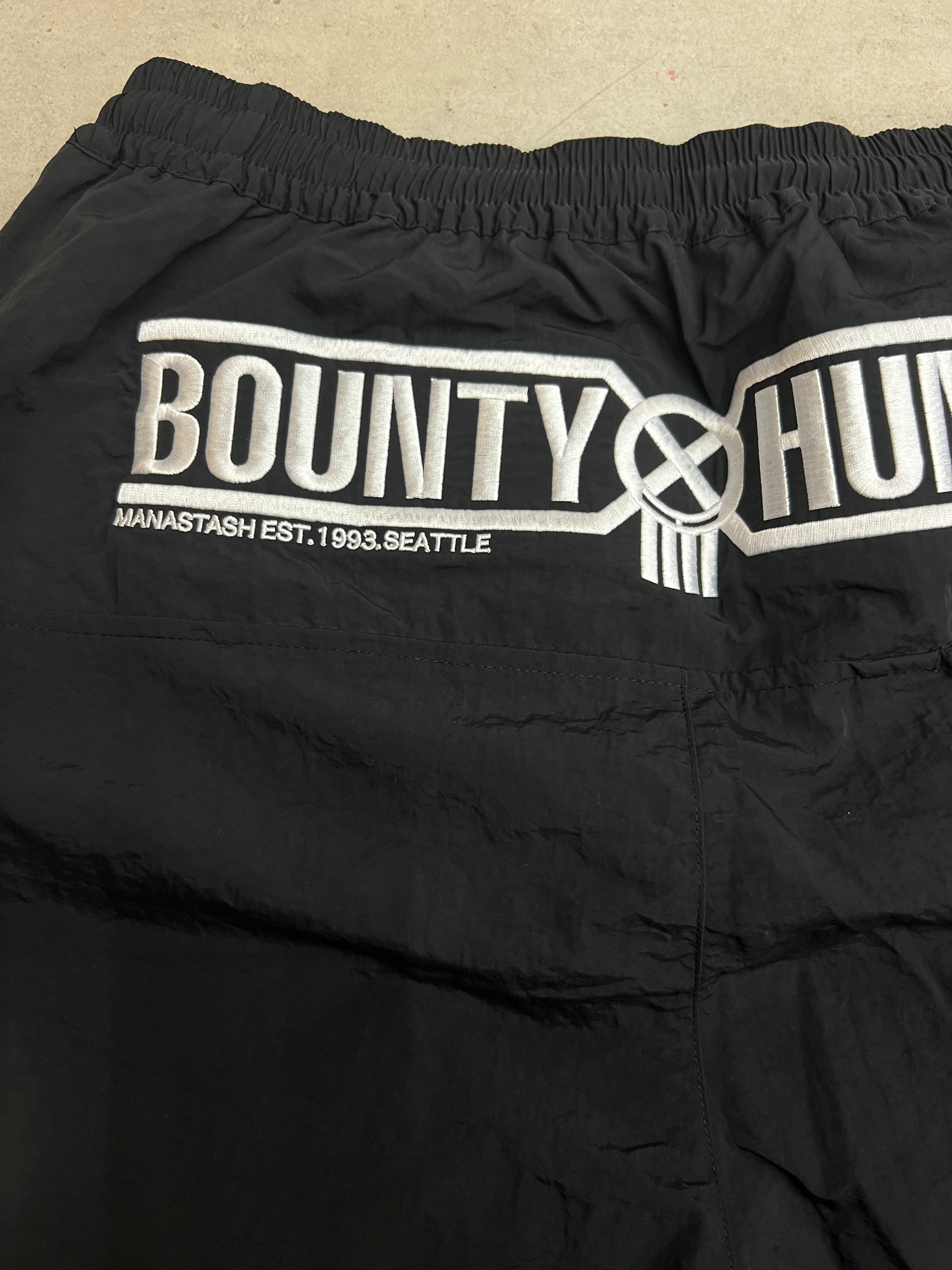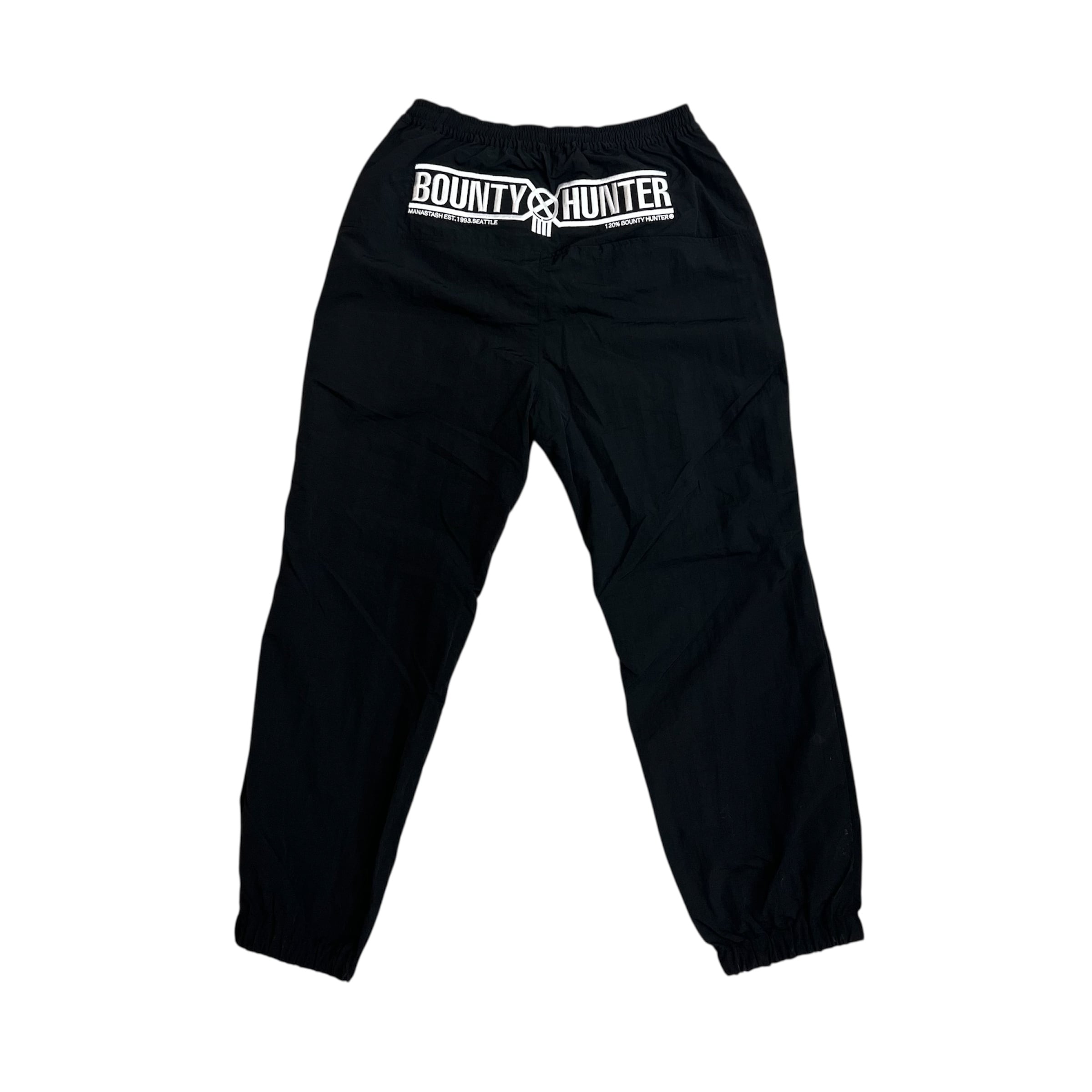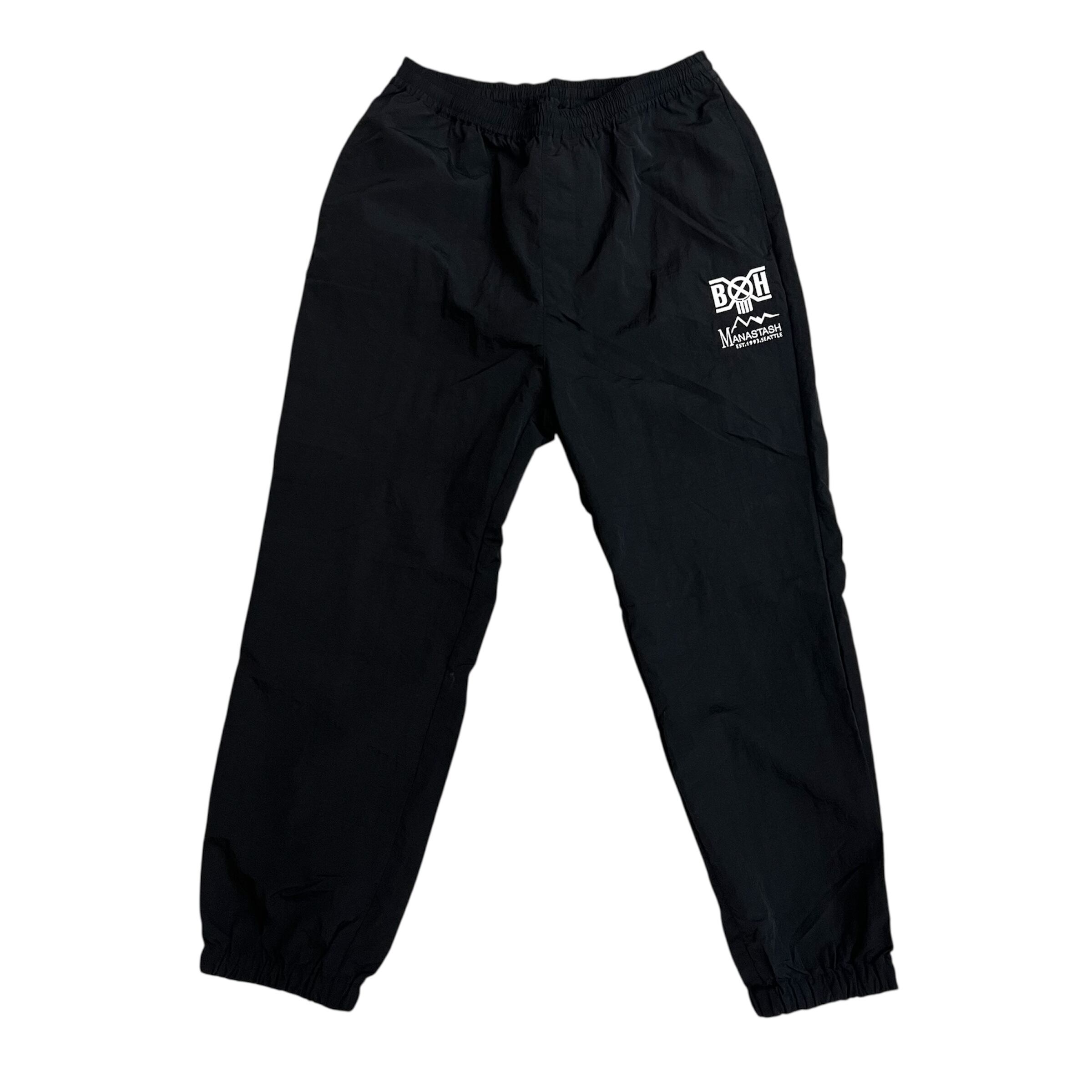 ・ハリのあるナイロン素材のトラックパンツに前後にコラボレーションロゴが刺しゅうで入った非常にインパクトのあるデザイン。