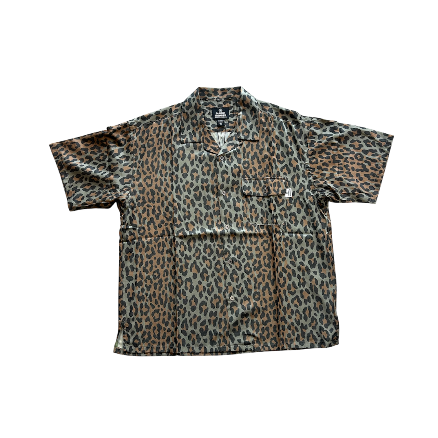 NOWON SELECT "MAGIC NUMBER RAYON TWILL LEOPARD OPEN CALLOR SHIRT