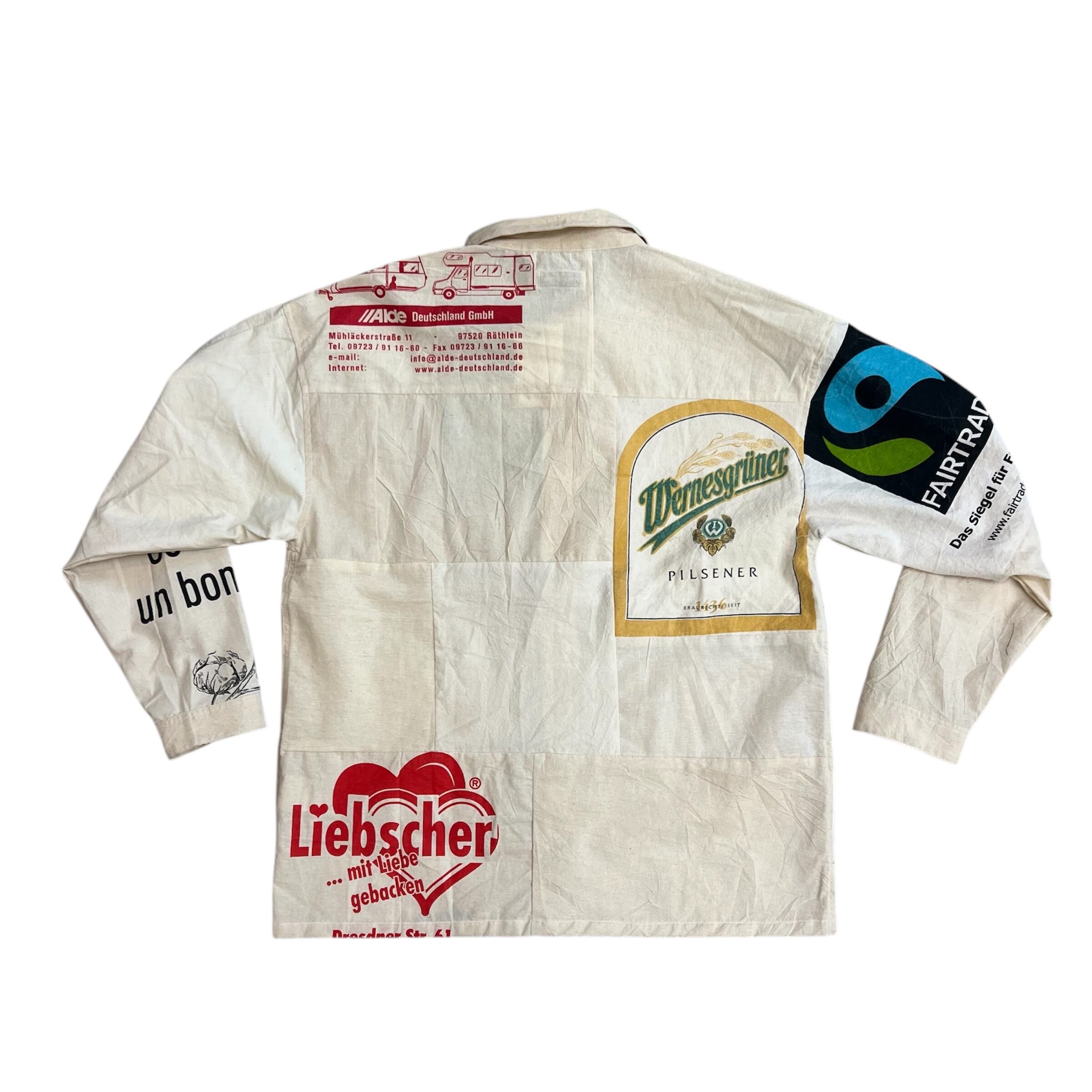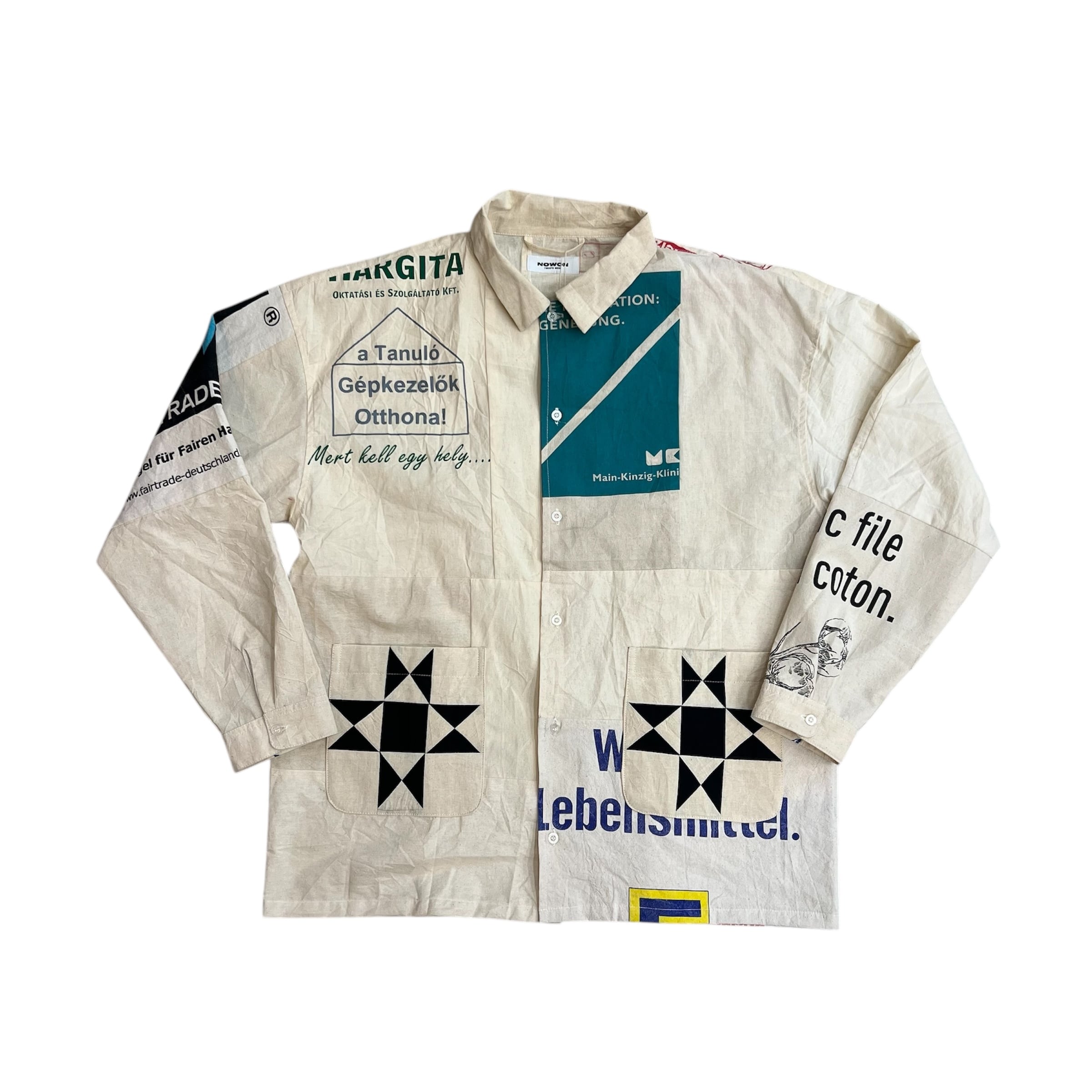 NOWON REMAKE "SOUVENIR BAG COVERAL SHIRT A"のご紹介です!こちらはスーベニアバッグを活かしてリメイクされたカバーオール型のシャツです。お土産用エコバッグの魅力を再構築し、唯一無二のアイテムとして仕上げました。
