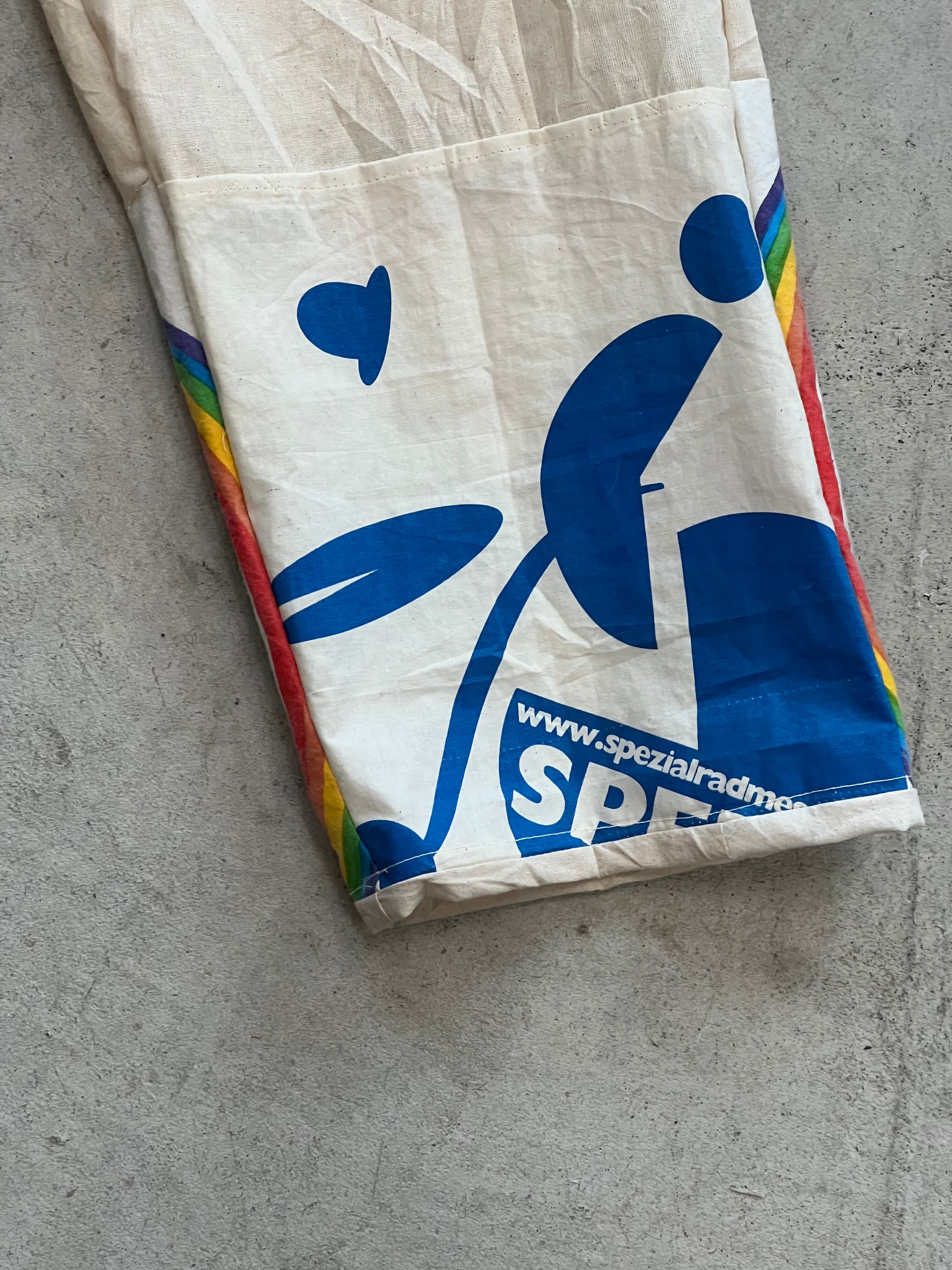 NOWON REMAKE "SOUVENIR BAG EAZY PANTS "登場です!こちらはスーベニアバッグを活かしてリメイクされたイージーパンツです。ユニークなデザインと機能性を兼ね備えた、特別な一品に仕上げました。 ワンサイズで、リラックスしたシルエットと柔らかな履き心地が魅力です。